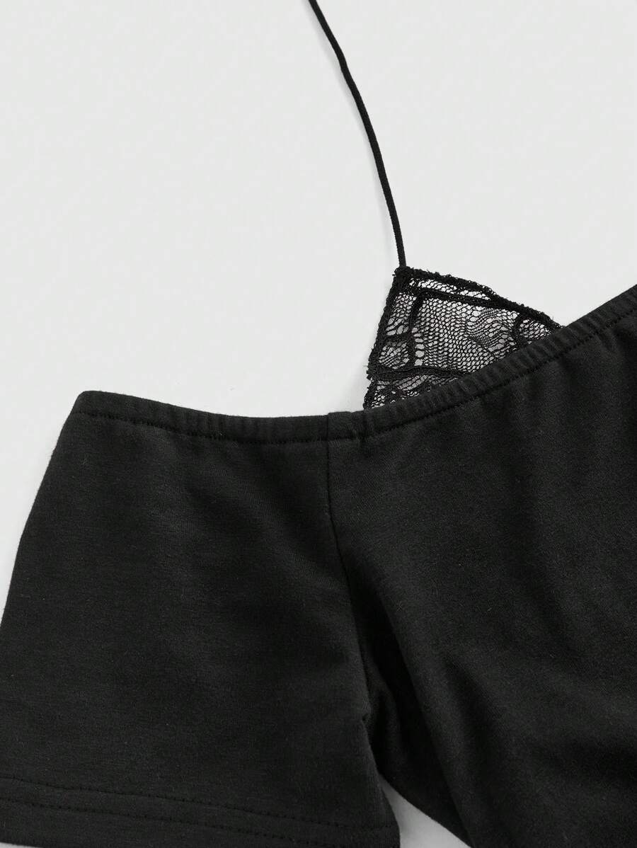 Fairycore Blusa versátil de 2 en 1 con contraste de encaje, estilo retro Y2K negro para mujer