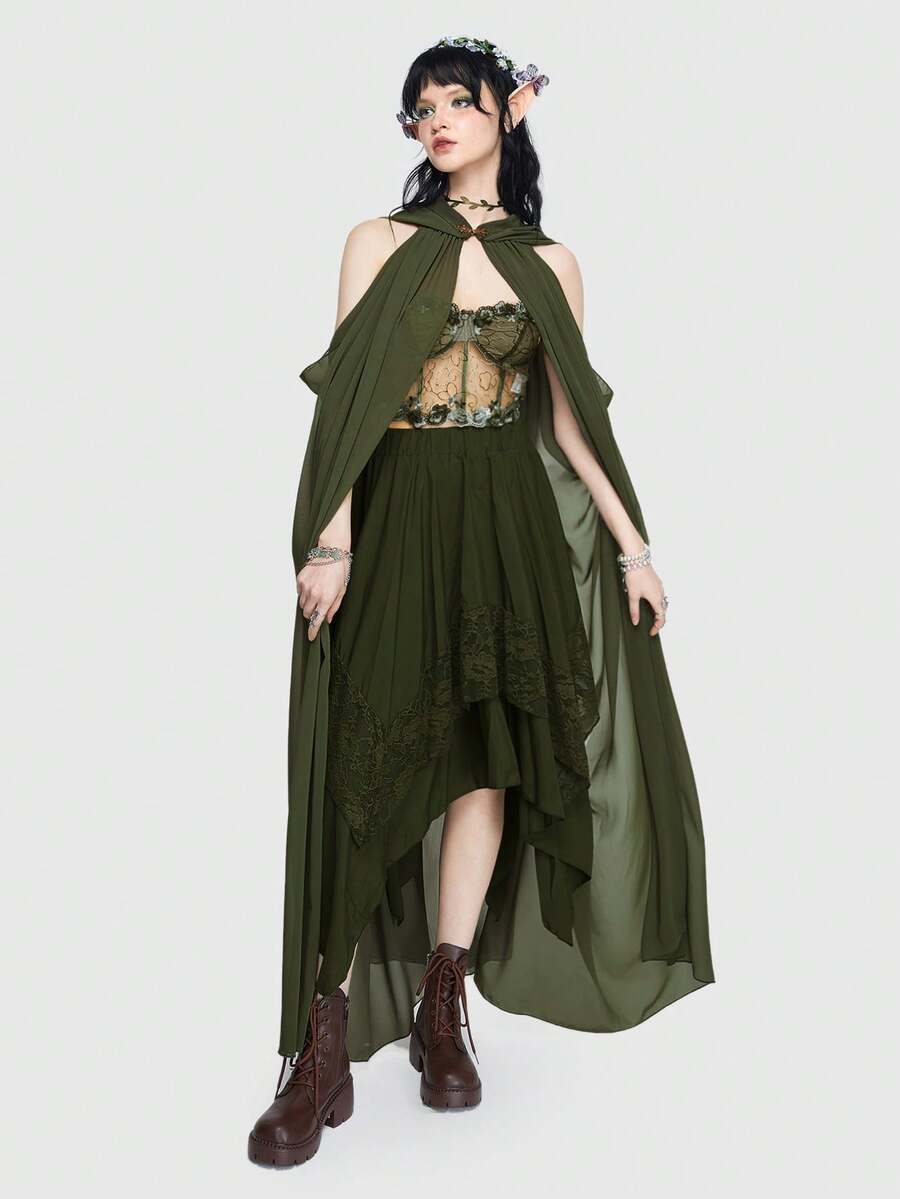 Fairycore Capa vintage ligera con capucha de la Reina de las Hadas del Bosque