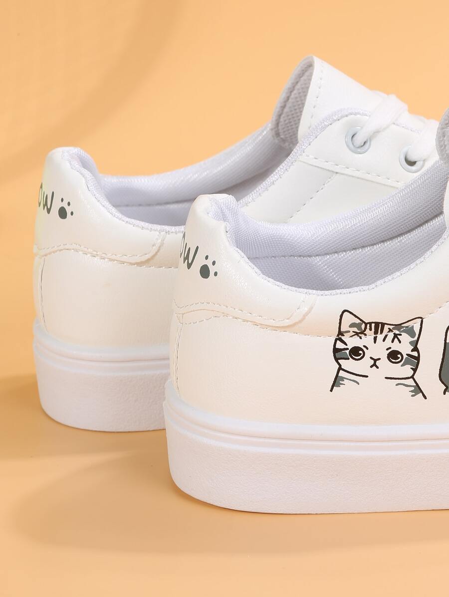 Zapatillas casuales con decoración de patrón de búho para mujer, para otoño/invierno. Zapatillas de skate blancas con cordones, adecuadas para todas las estaciones
