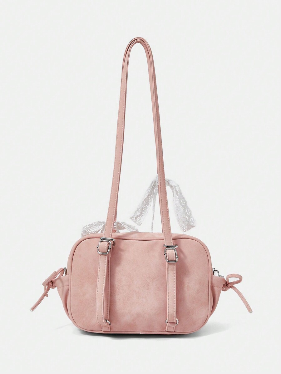 Bolso de hombro con decoración de lazo y bolsillos dobles para mujer