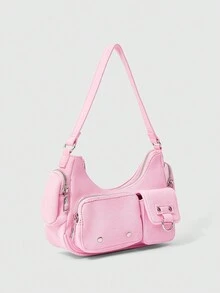 Kawaii Bolso de tela vaquera de moda, bolso versátil vintage con múltiples bolsillos para llevar bajo el brazo