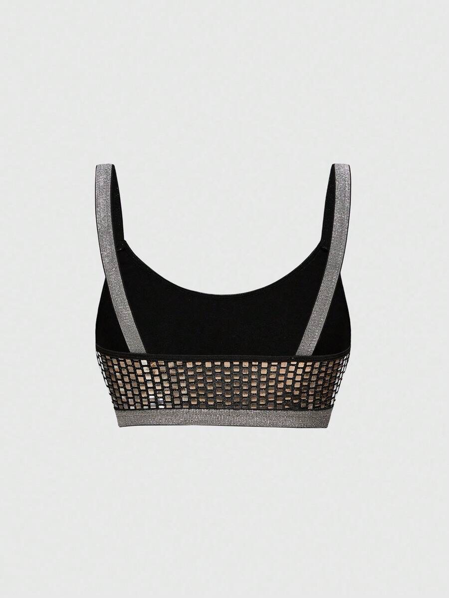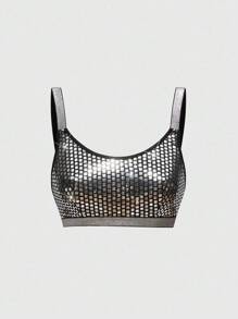 ROMWE Avant Sujetador inalámbrico con decoración de hilo metálico y lentejuelas, adecuado para festivales de música, fiestas y celebraciones