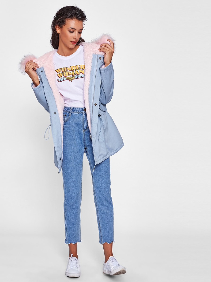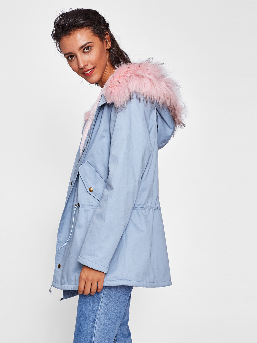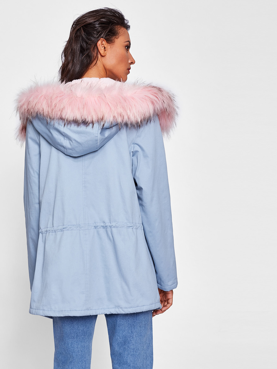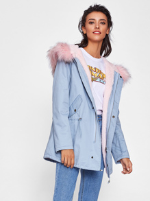 Parka de capucha con ribete de piel sintética con cordón ajustable