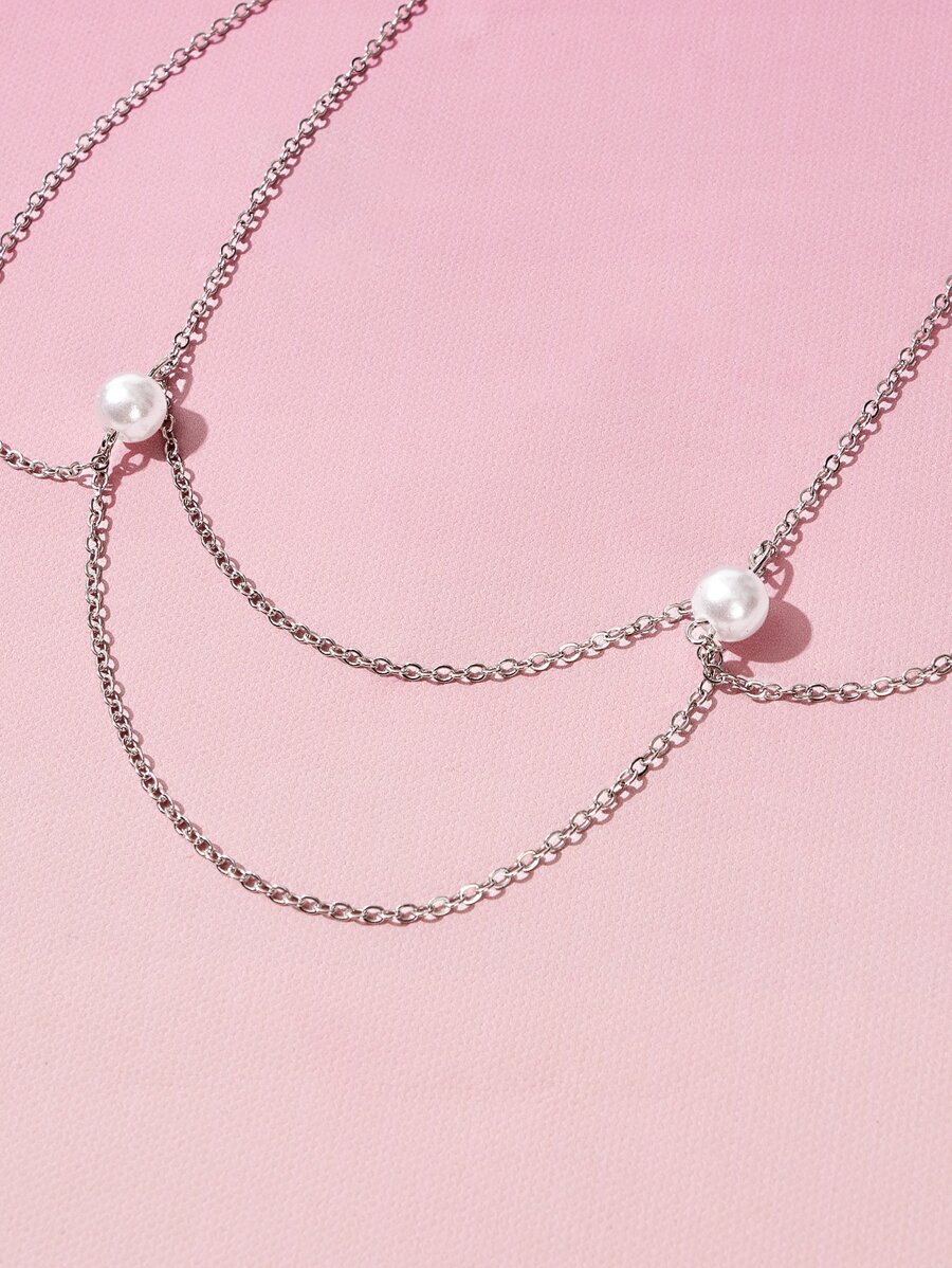 Cinturón Con Cadenas De Decoración De Perlas Falsas Elegantes