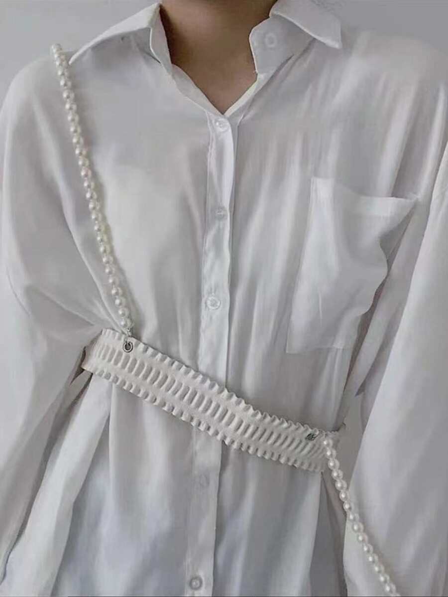 Cinturón arnés con diseño de perla artificial con diseño fruncido