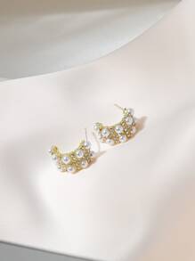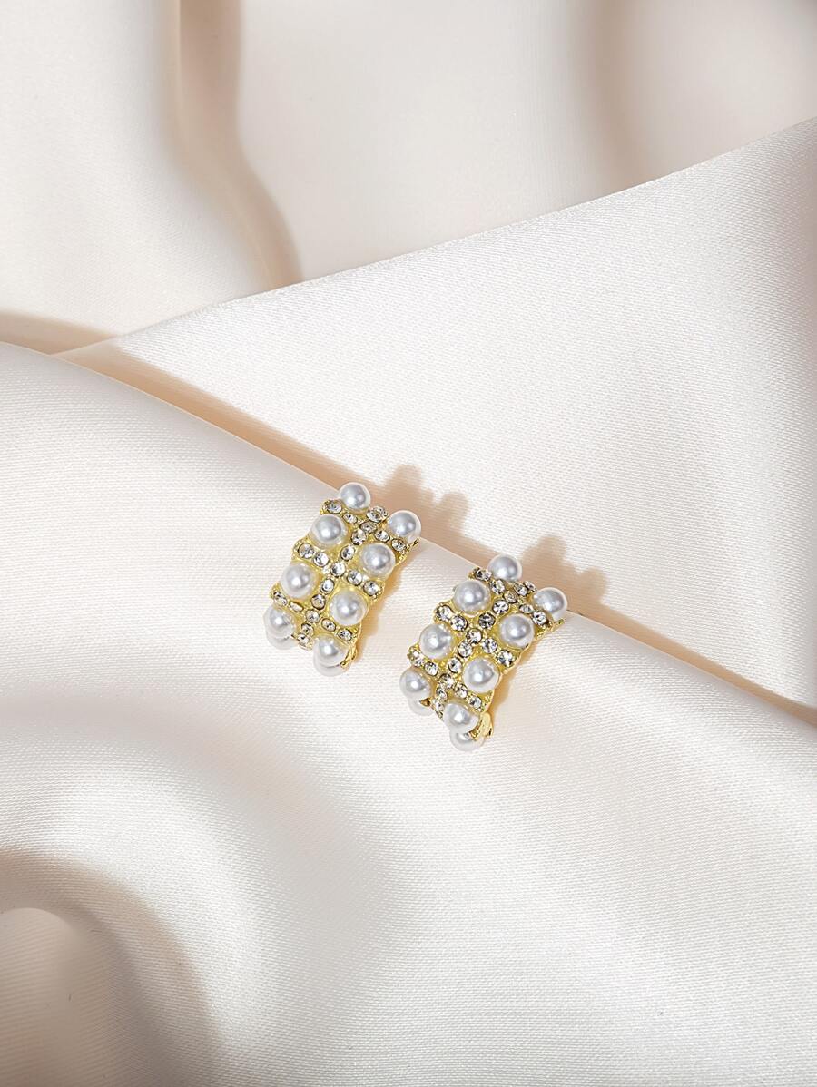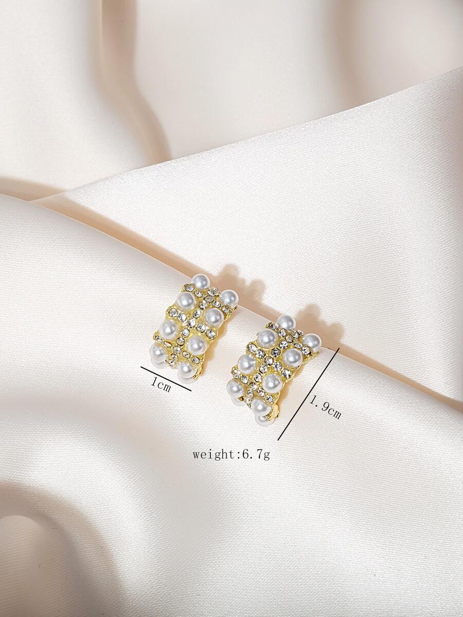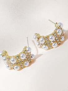 Pendientes con perla artificial & con diseño de diamante de imitación