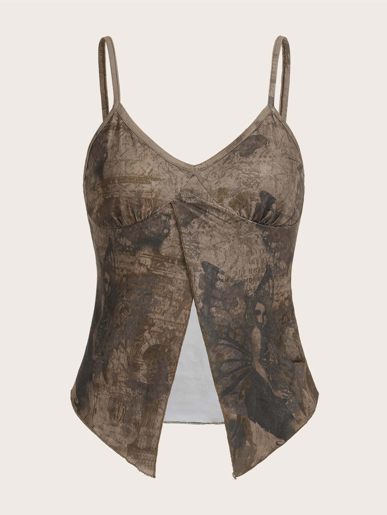 Top de tirantes con estampado de figura bajo con abertura