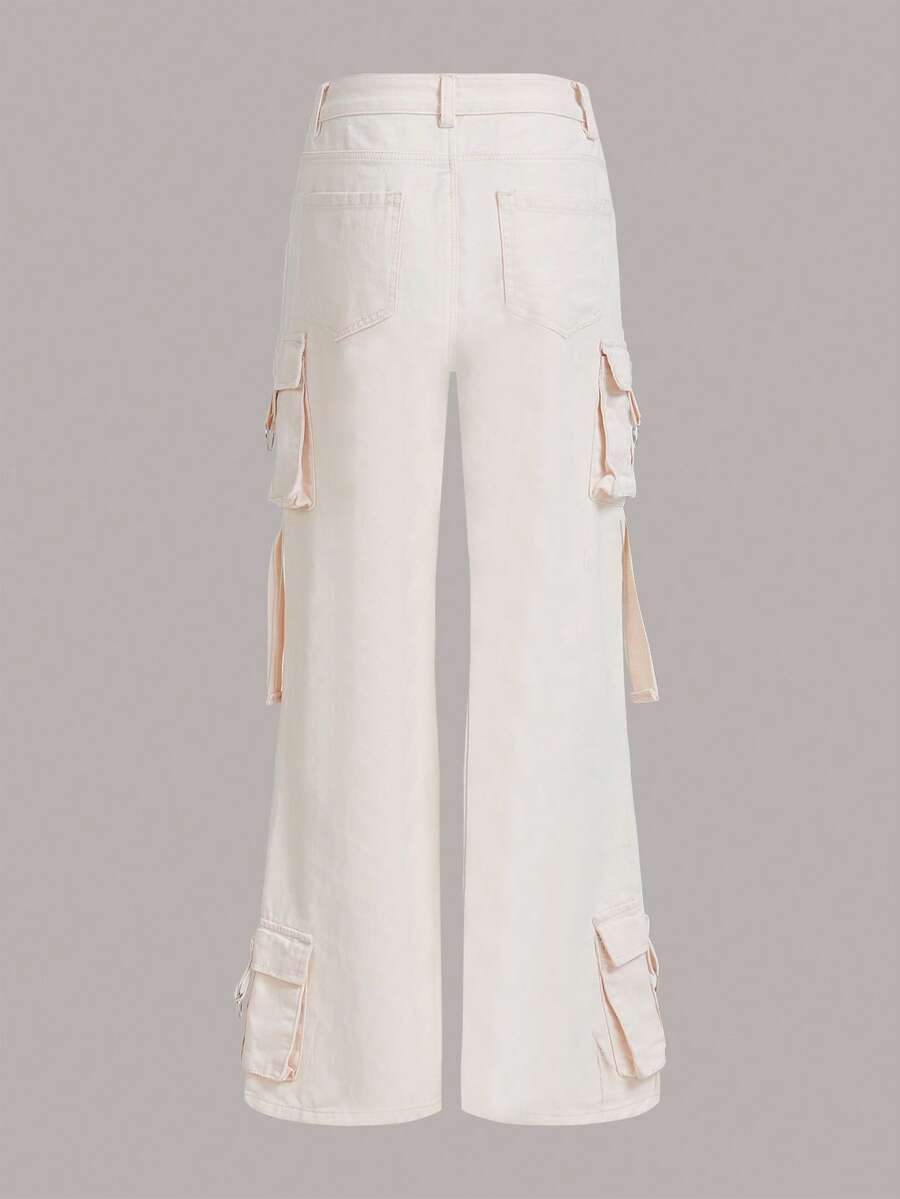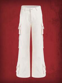 Grunge Punk Jeans cargo con bolsillo lateral con solapa