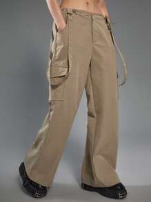 Grunge Punk Pantalones cargo con bolsillo lateral con solapa