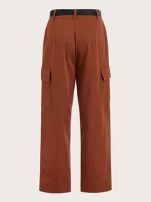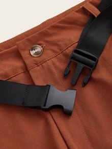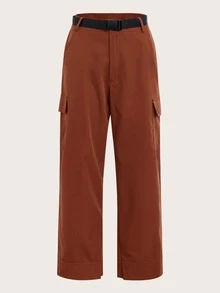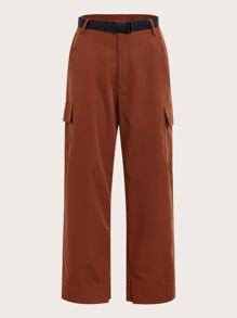 Pantalones con bolsillo lateral con solapa con hebilla de empuje con cinturón