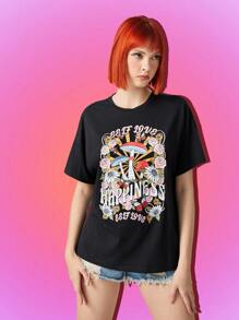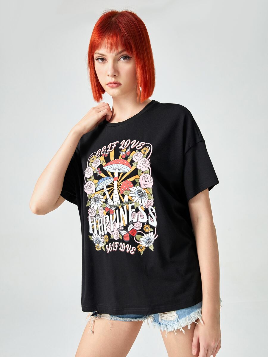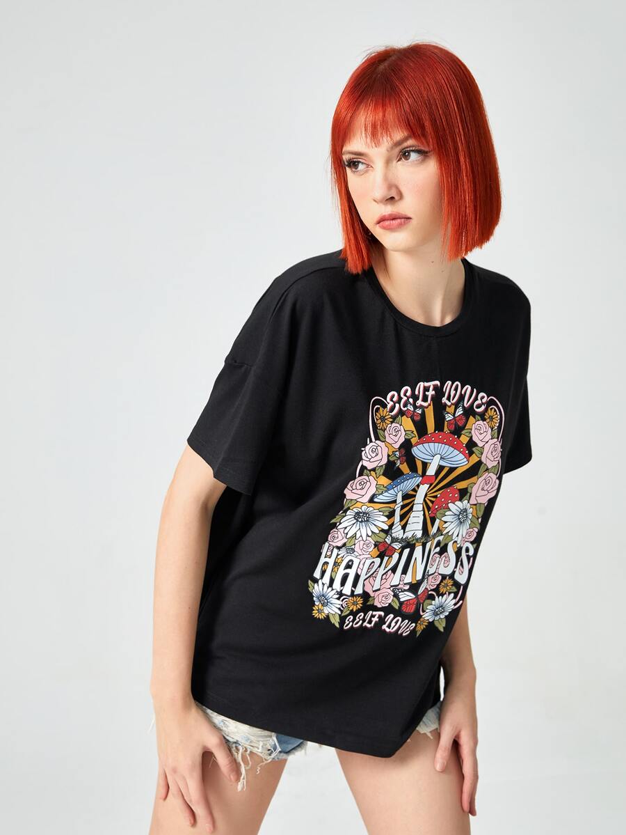 Camiseta con estampado floral con seta
