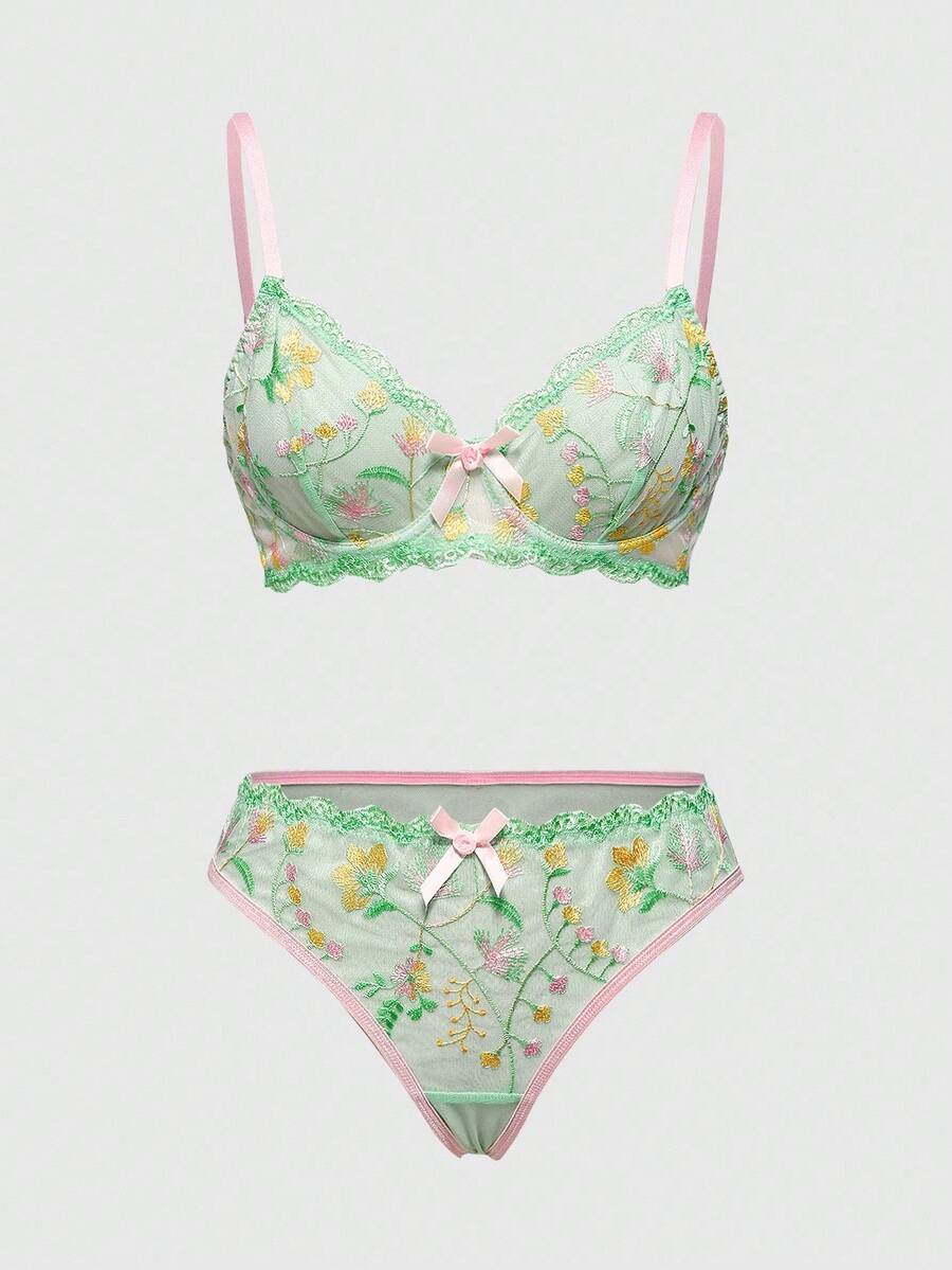 Fairycore Conjunto de lencería sexy con bordado floral hecho a mano con aros, para verano