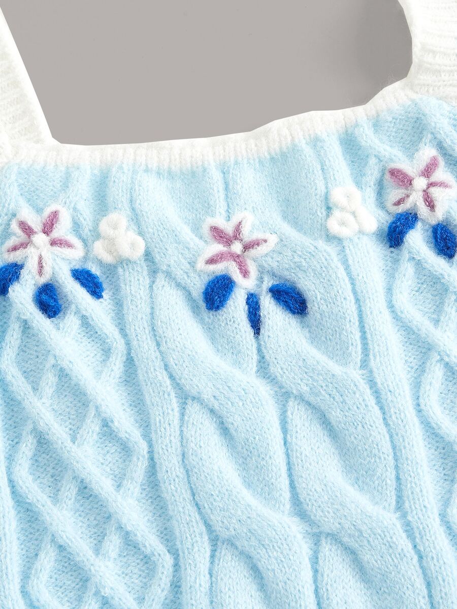 Top de punto con bordado floral ribete con fruncido