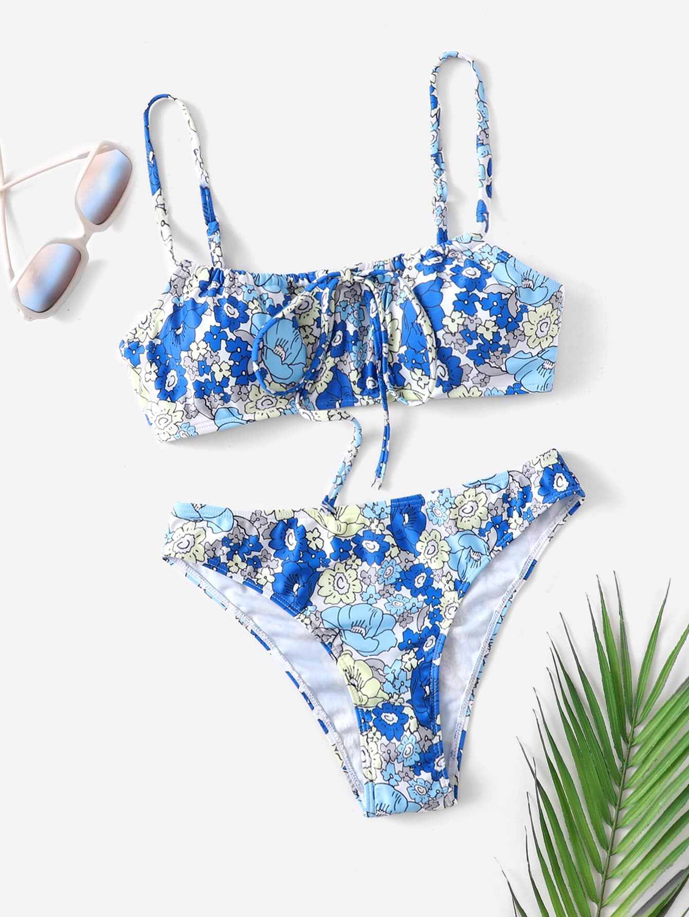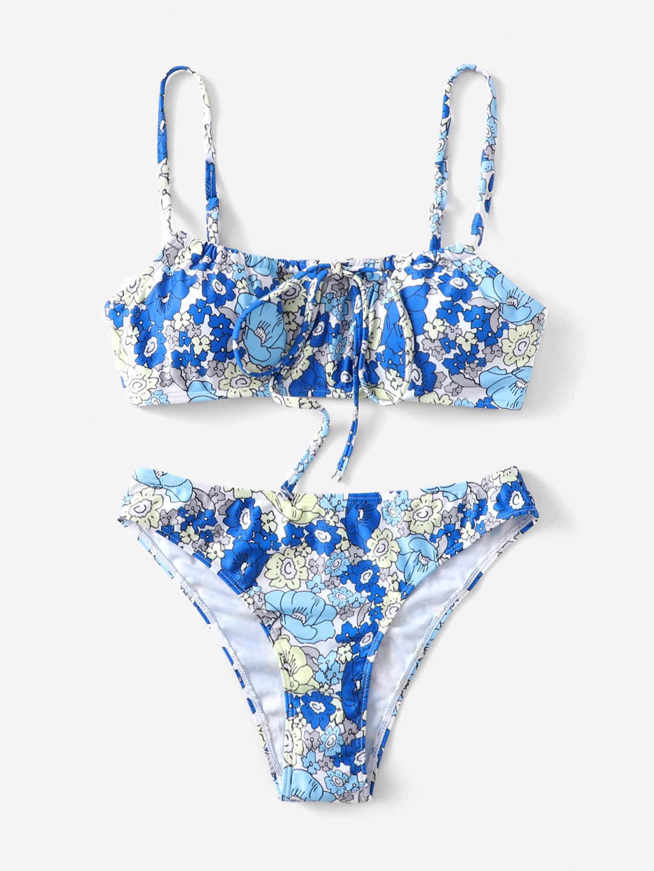Conjunto de bikini floral con decoración de cordones, para la playa de verano