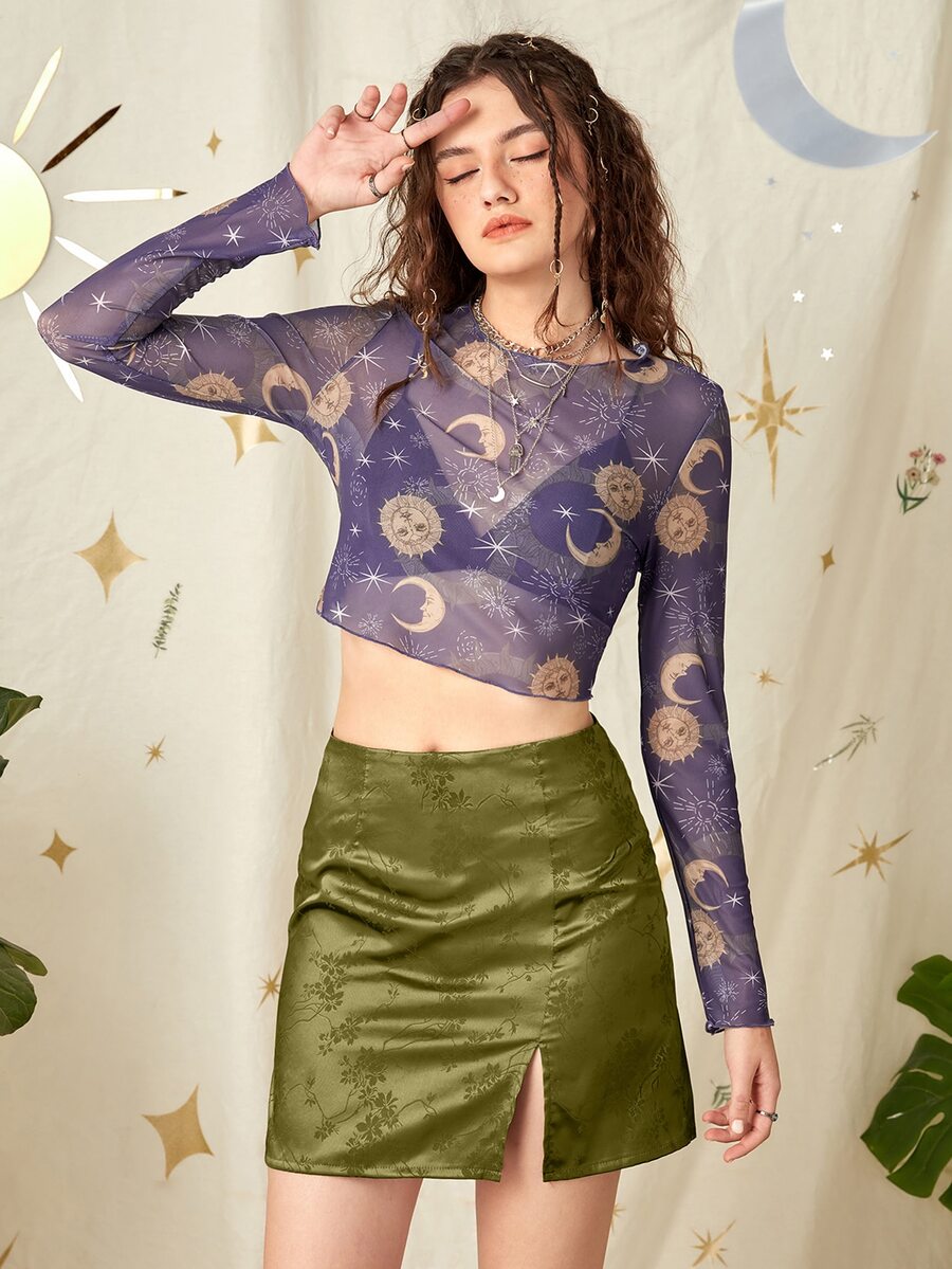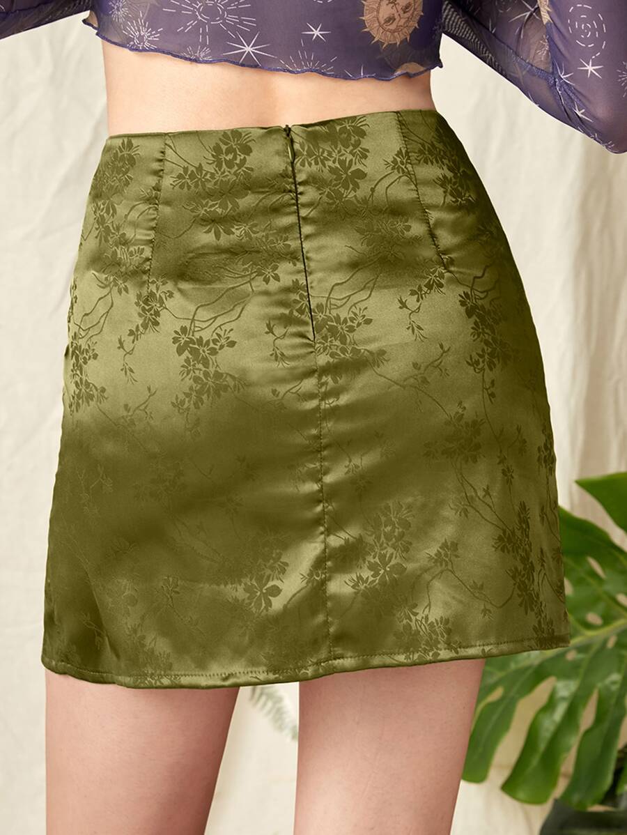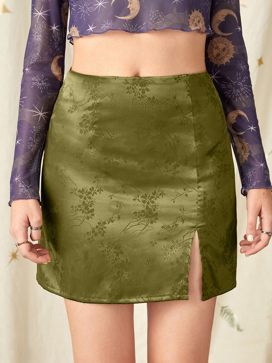 Falda bajo con abertura floral jacquard