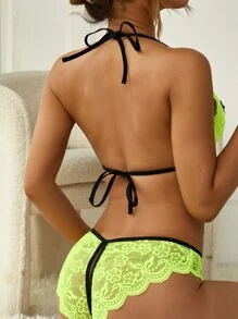Set de lencería con encaje floral con diseño de lazo con abertura halter