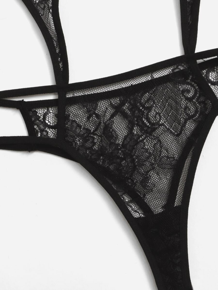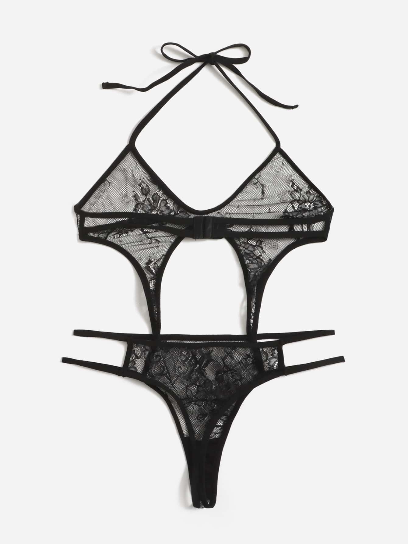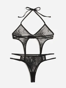 Body teddy con encaje floral con abertura halter