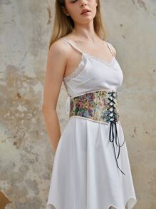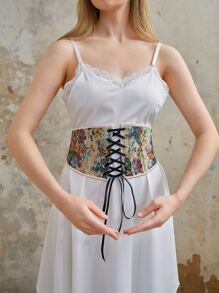 Fairycore Cinturón corsé con patrón floral con cordón