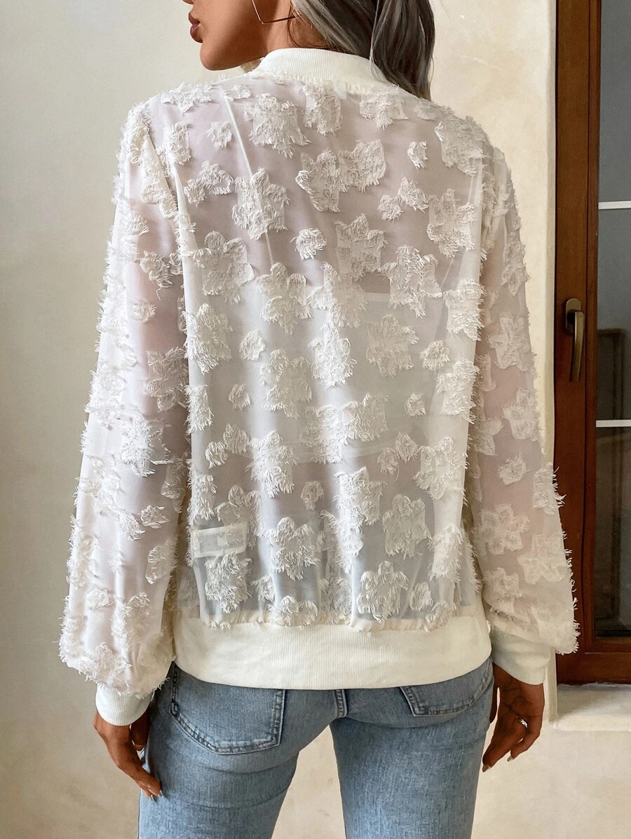 Cazadora tipo bomber con patrón floral con cremallera transparente