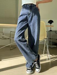 Jeans De Pierna Ancha Lavados De Cintura Alta
