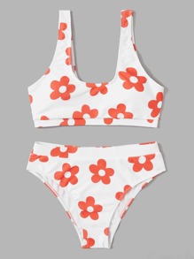 Sweetness Conjunto de bikini con estampado floral para playa en verano