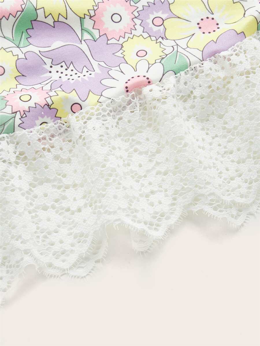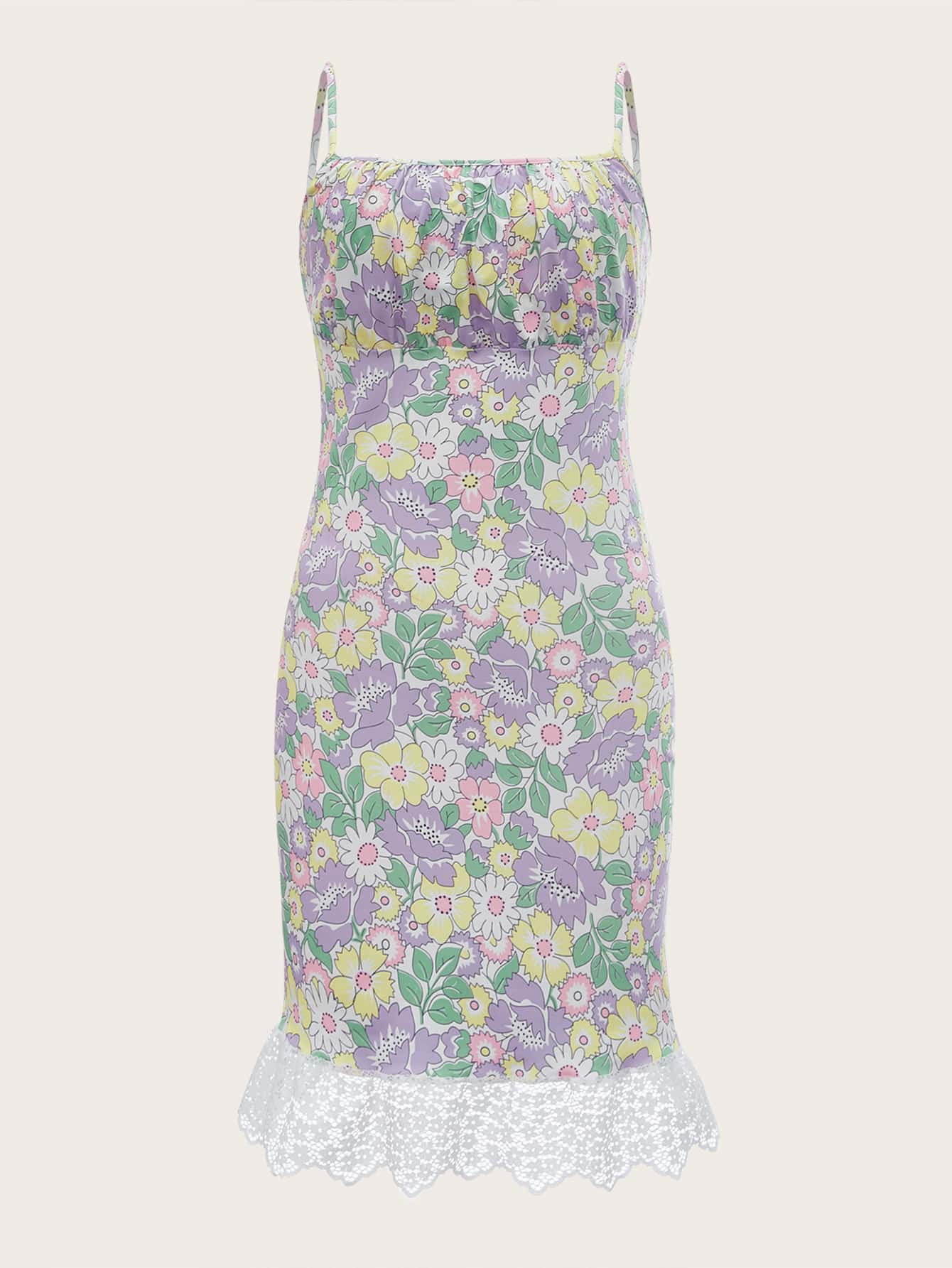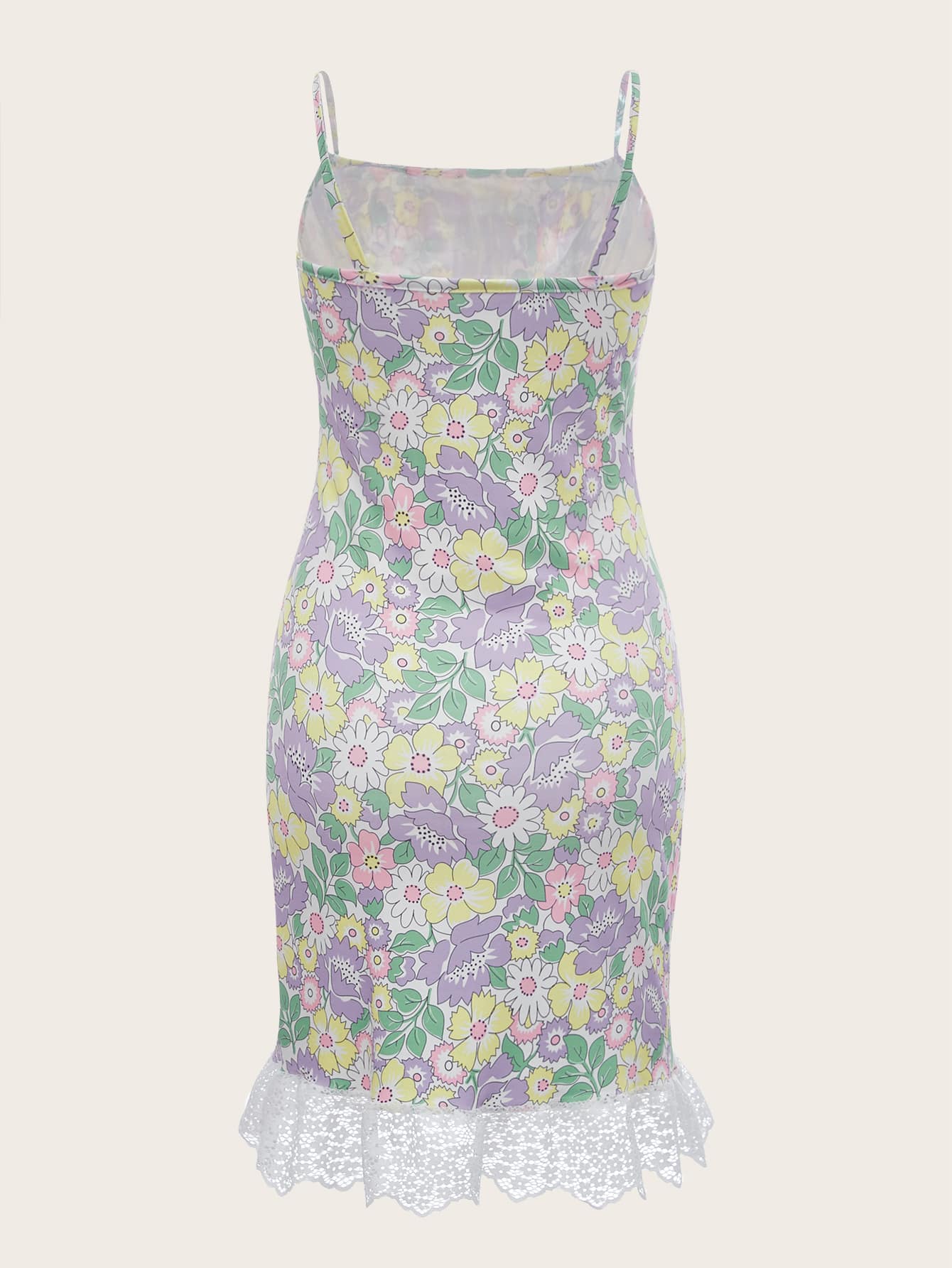 Vestido de tirantes con estampado floral con encaje en contraste pecho con fruncido