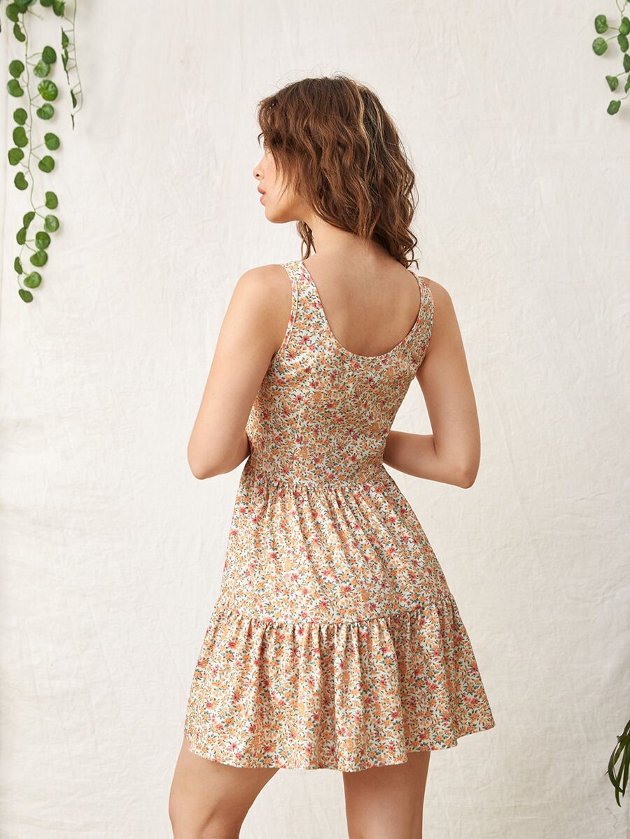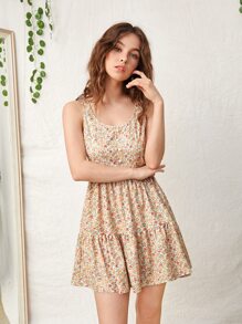 Vestido con estampado floral con botón falso bajo con volante