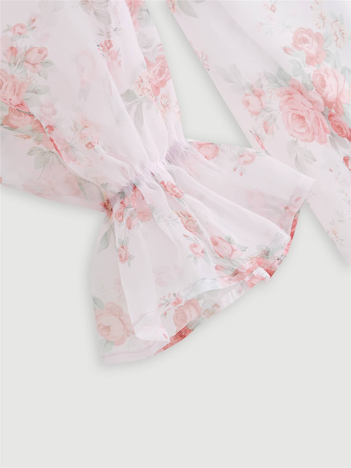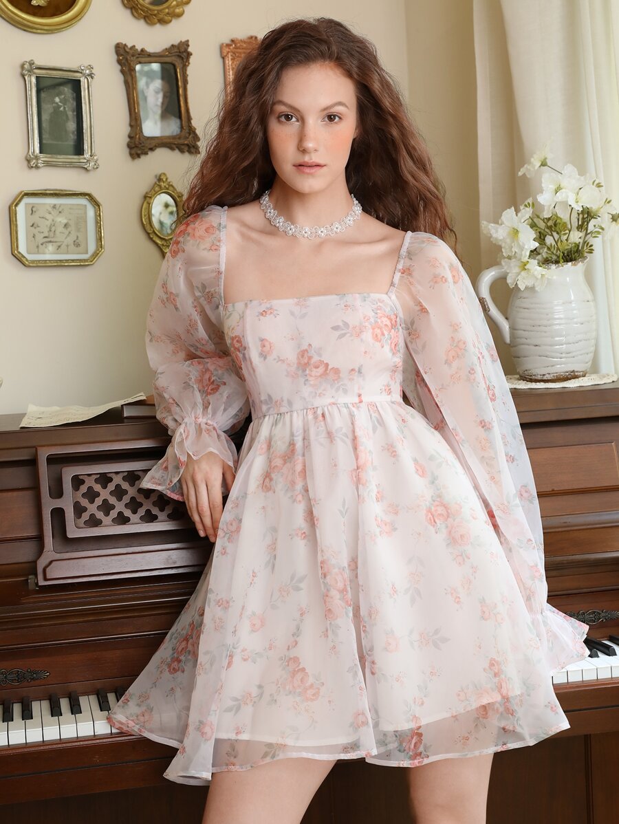 Vestido con estampado floral de manga con volante de cuello cuadrado