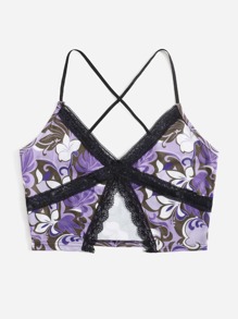 Top de tirantes con estampado floral ribete con encaje