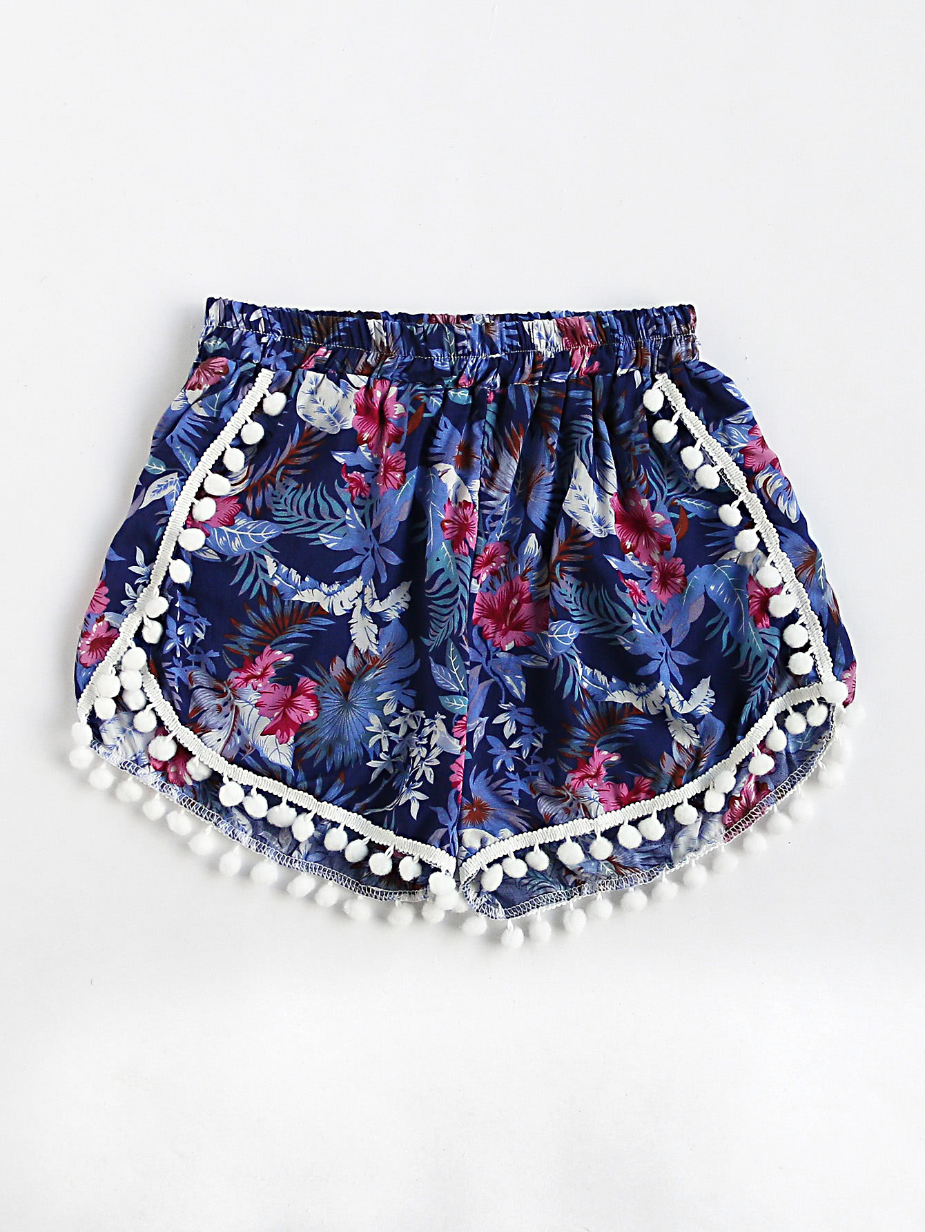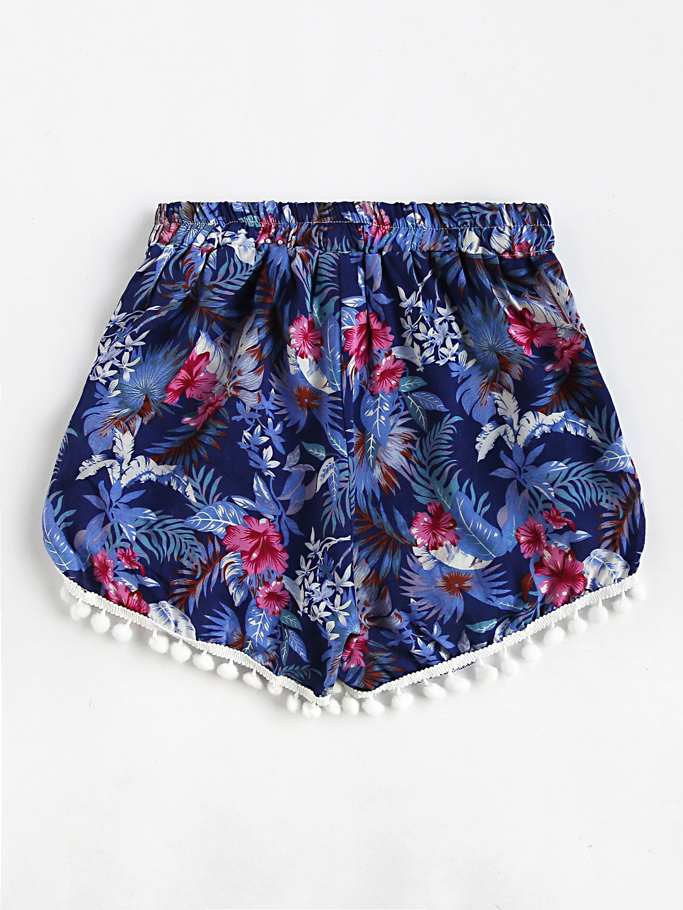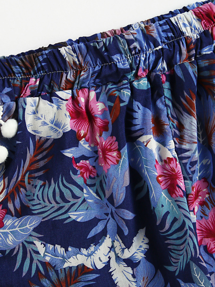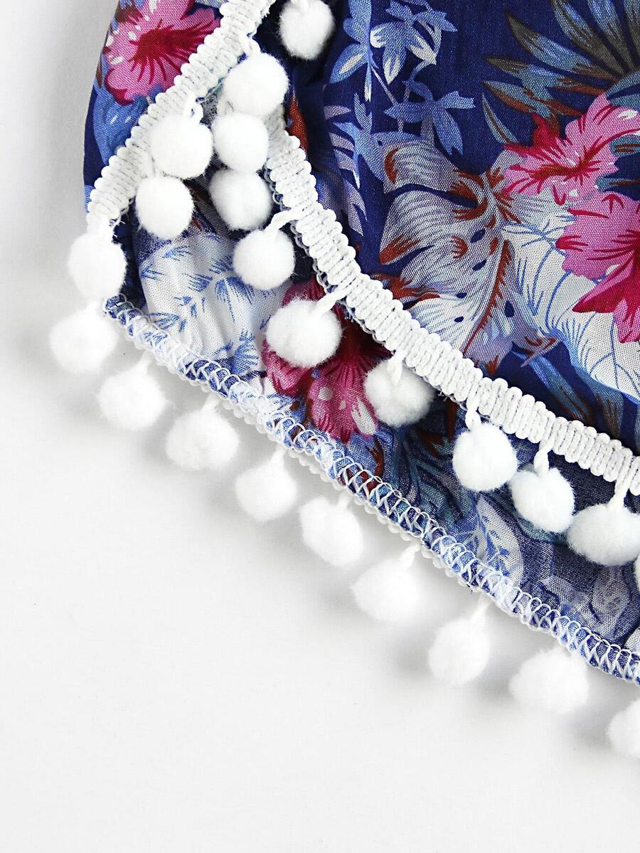 Shorts fruncido con estampado floral con bolitas