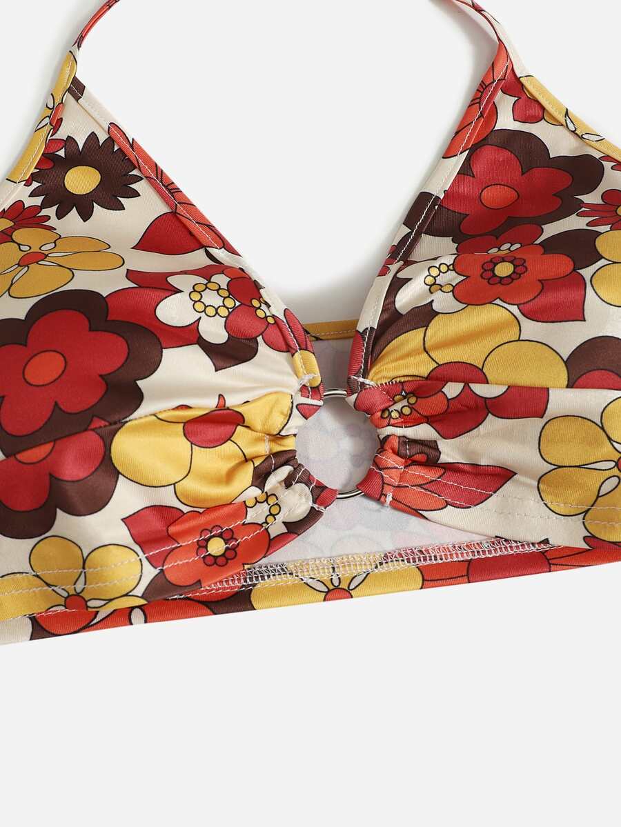 Top Halter Con Decoración De Anillo Y Estampado Floral