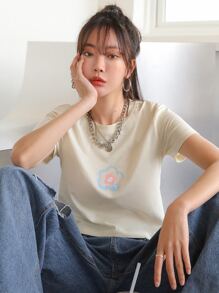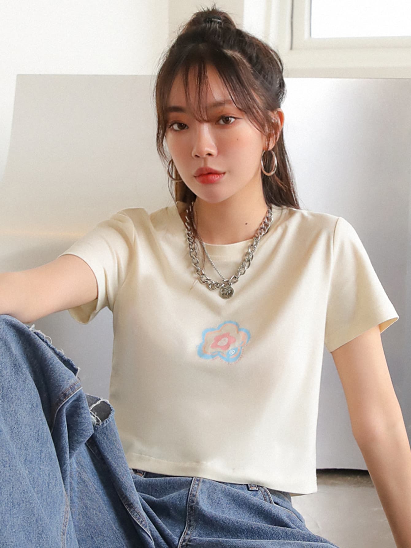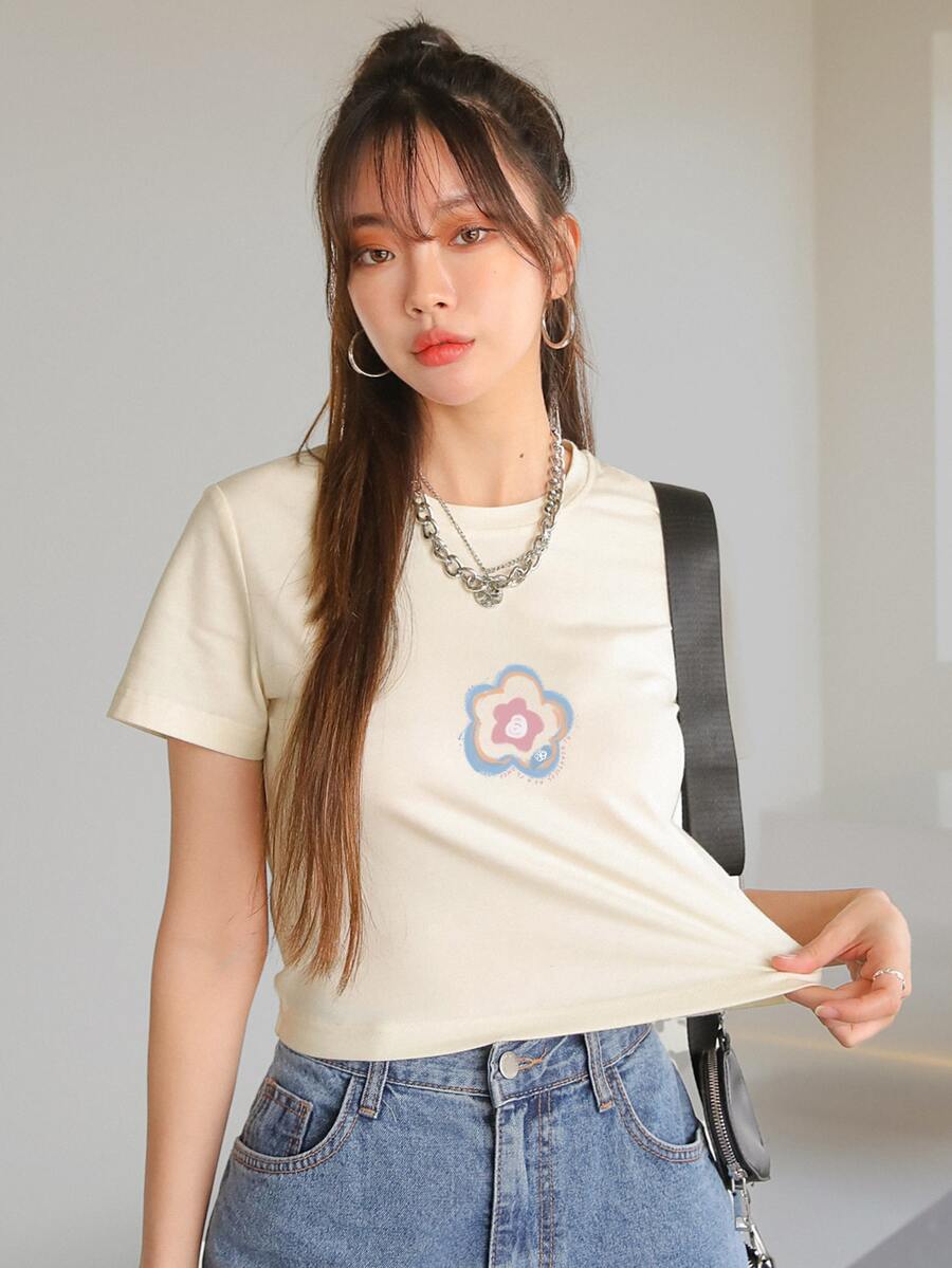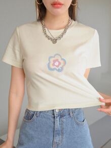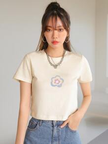 Camiseta Con Diseño Floral Y Cuello Redondo