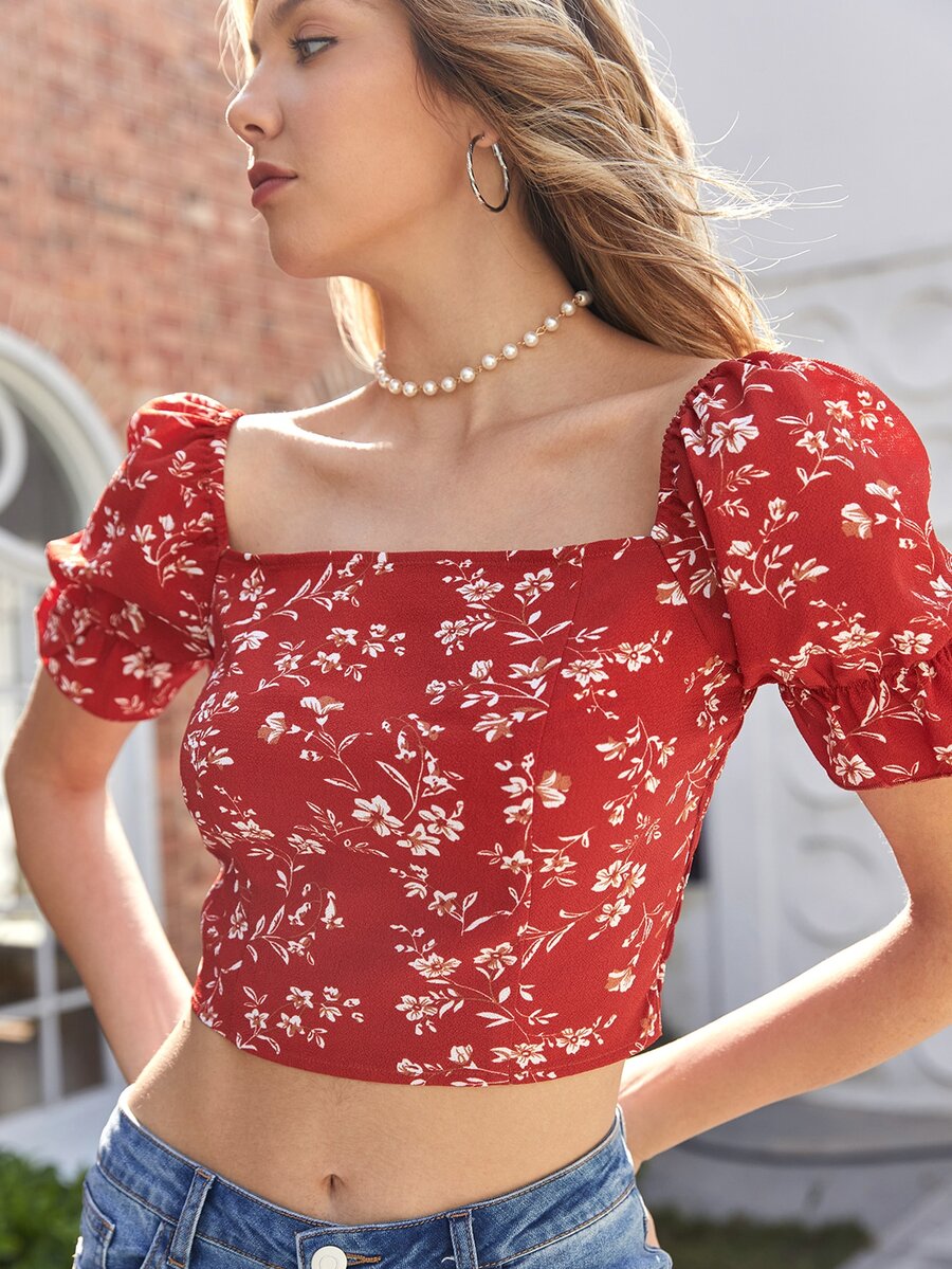 Blusas Volante Floral Casual