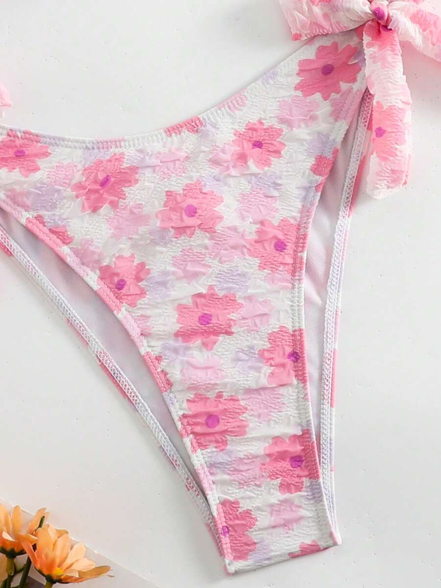 Conjunto de bikini de verano para playa con estampado floral y laterales para atar