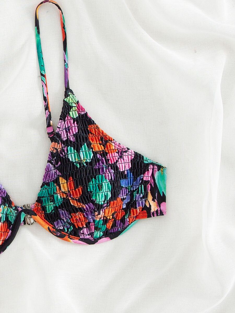 Top bikini floral Smocked con aro