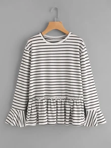 Top peplum de rayas de manga larga de campana