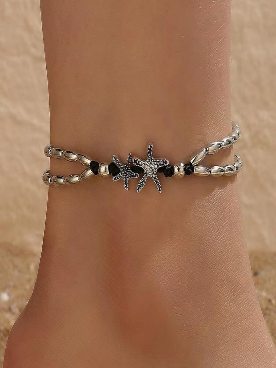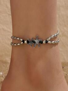 Pulsera tobillera con diamante de imitación con diseño de estrella de mar