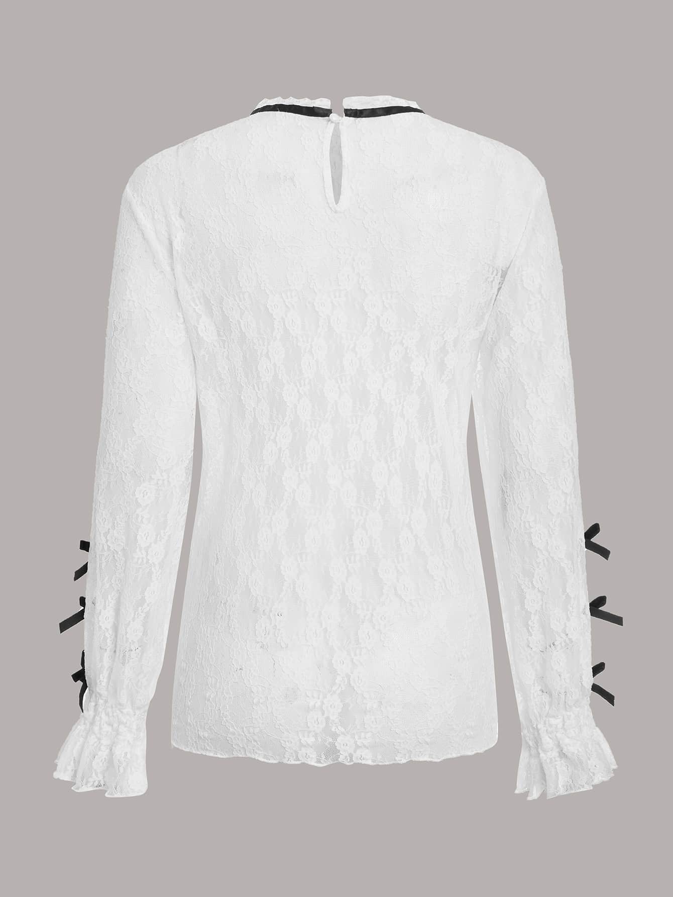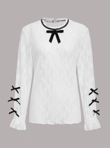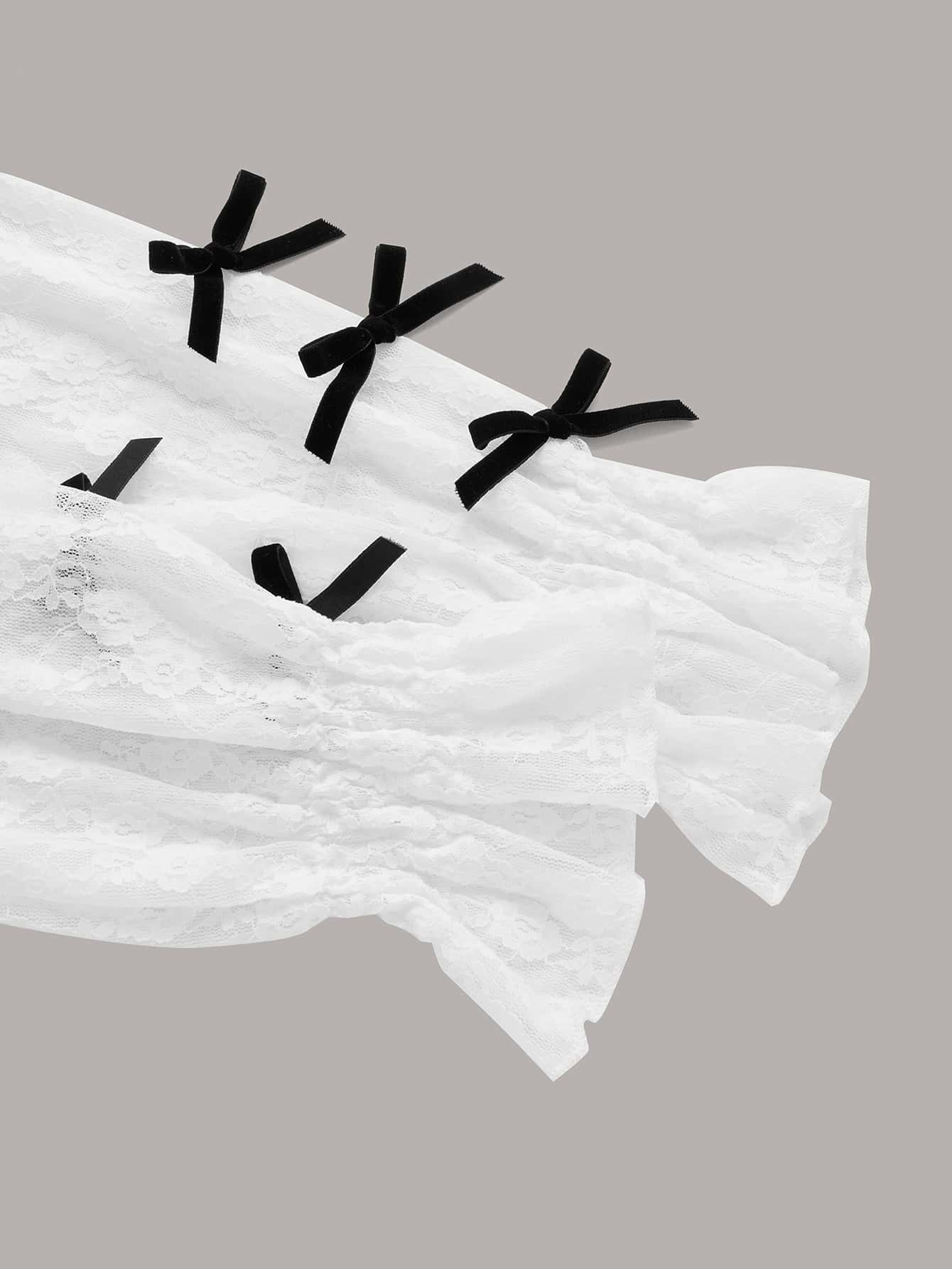 Top ribete fruncido con lazo delantero con encaje