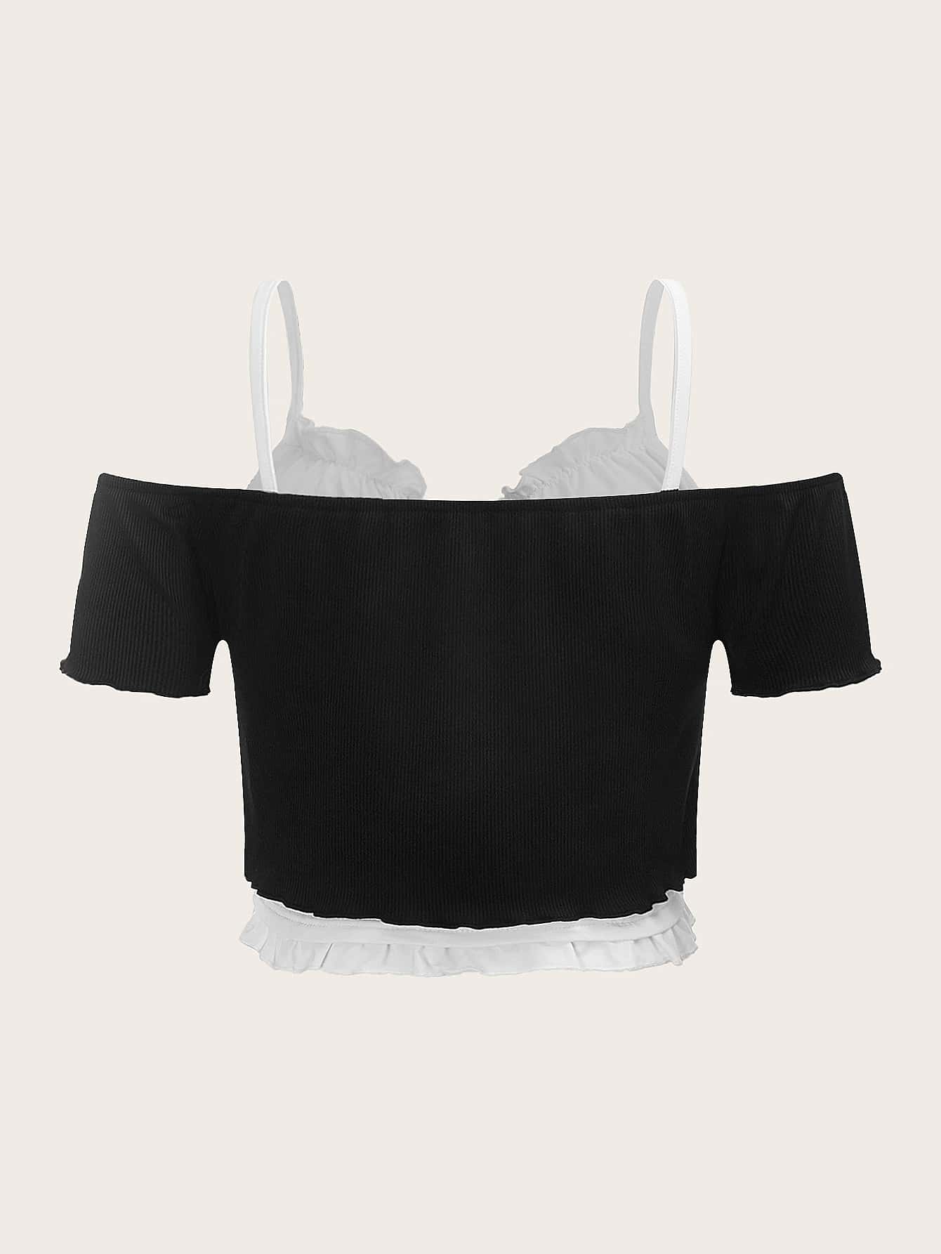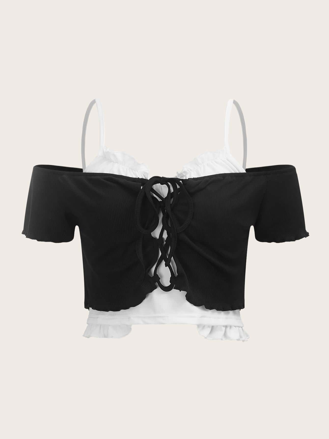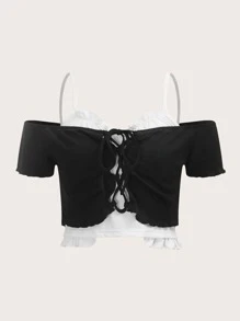 ribete fruncido Top de tirantes & con cordón Top de hombros descubiertos