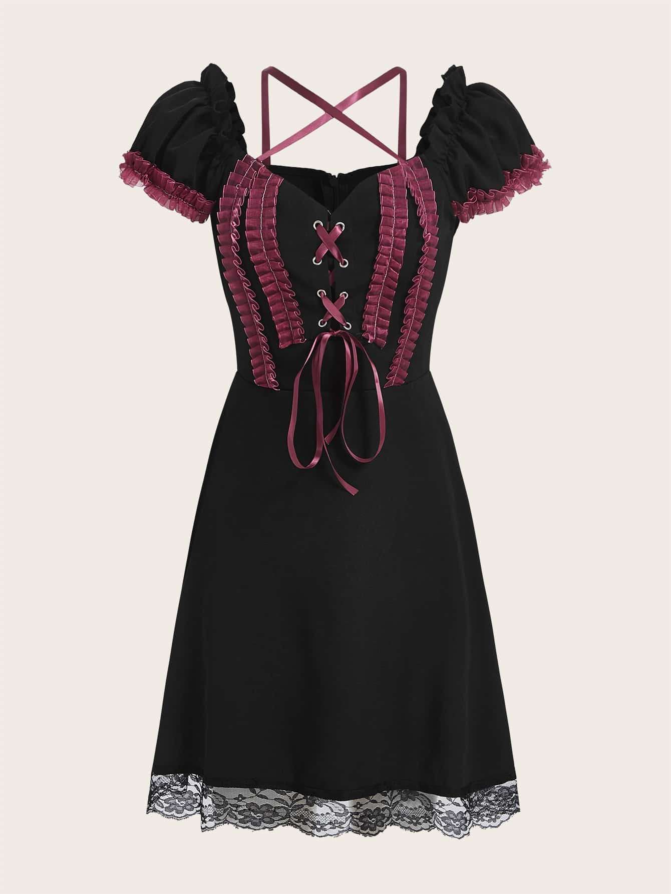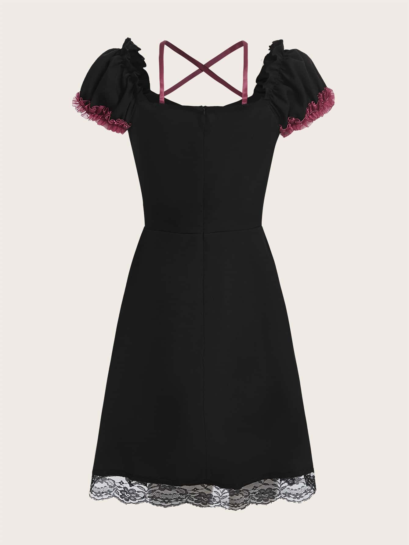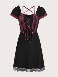 Vestido ribete fruncido con cordón de hombros descubiertos