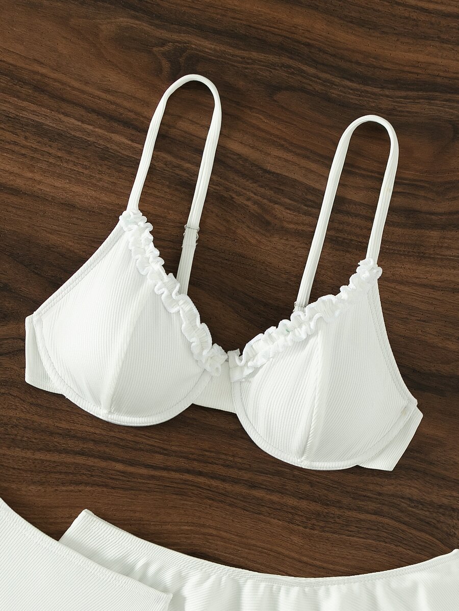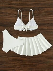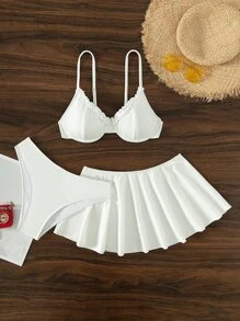 Conjunto de bikini de verano con ribete de volantes y push up con falda de playa