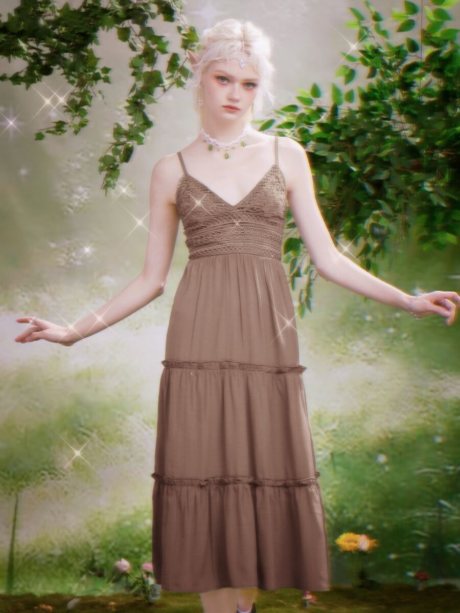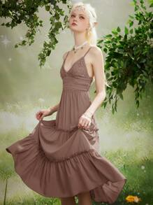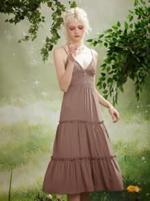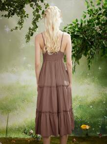Fairycore Vestido de tirantes ribete fruncido con fruncido