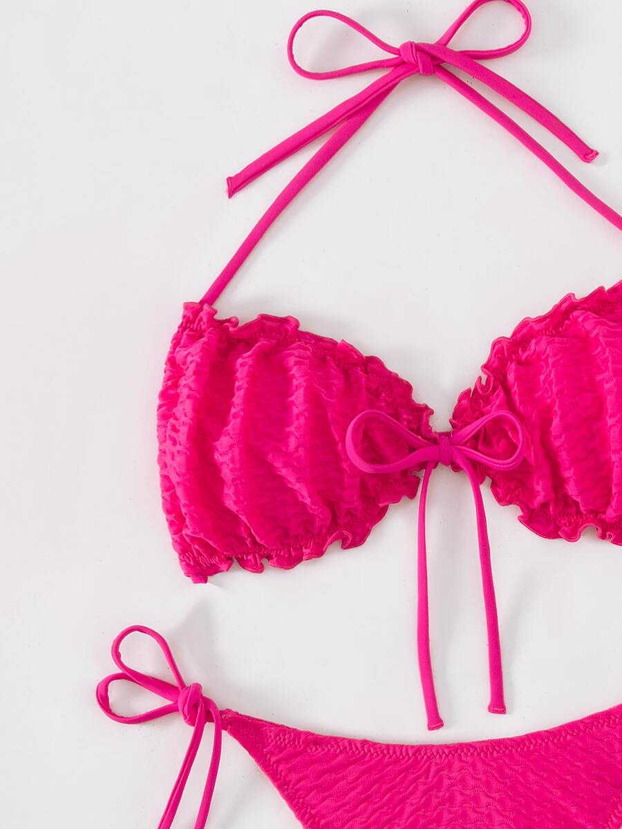 Conjunto de bikini de playa de verano con ribete de volantes y lazos en los lados