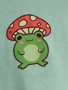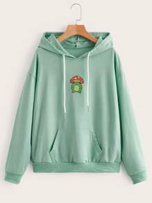 Capucha con rana & con estampado de seta con bolsillo de canguro con cordón