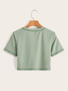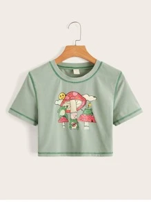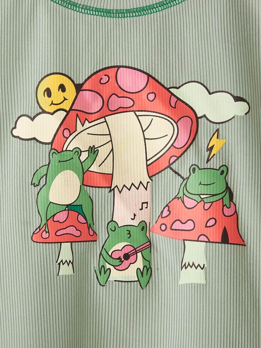Camiseta con rana & con estampado de seta de canalé