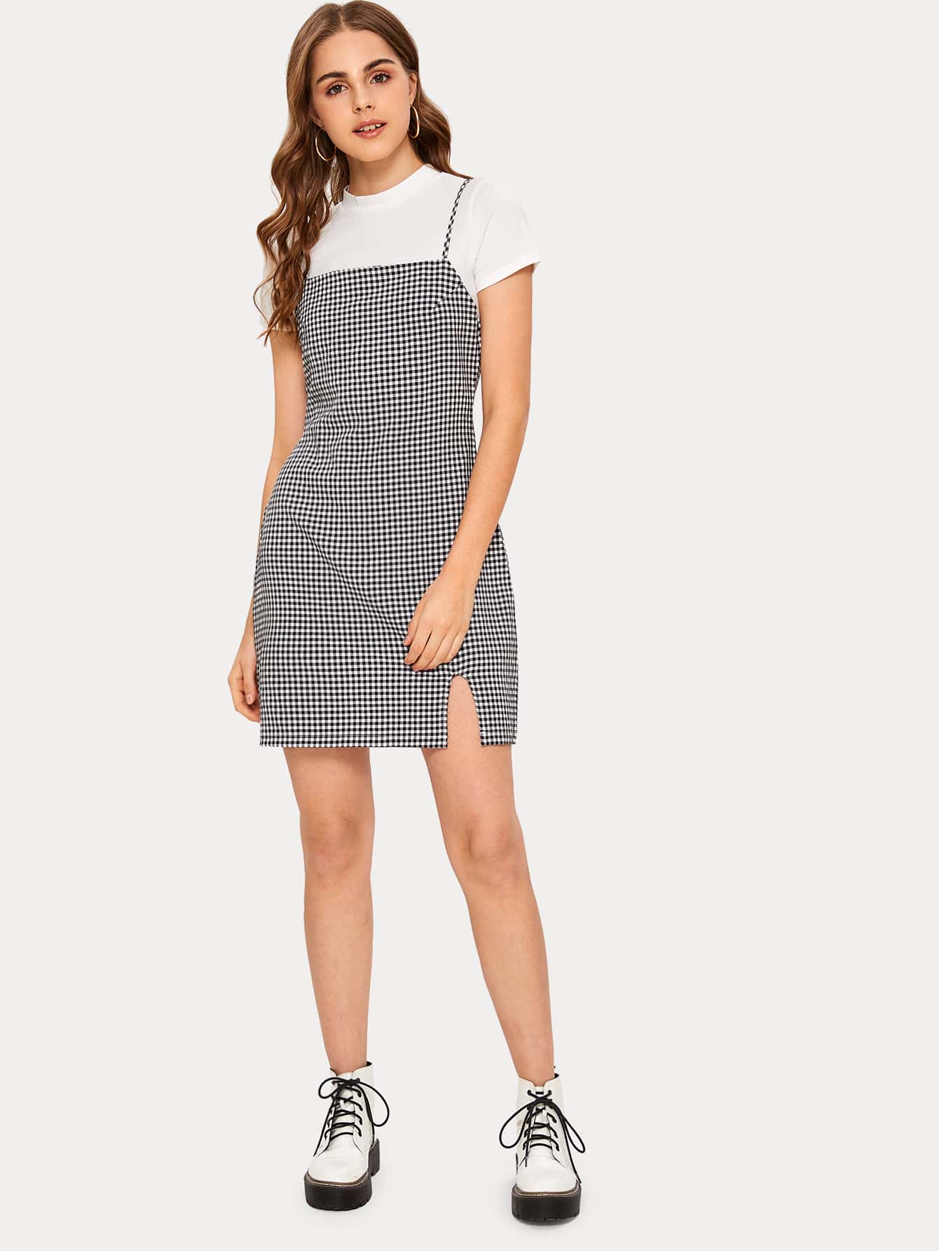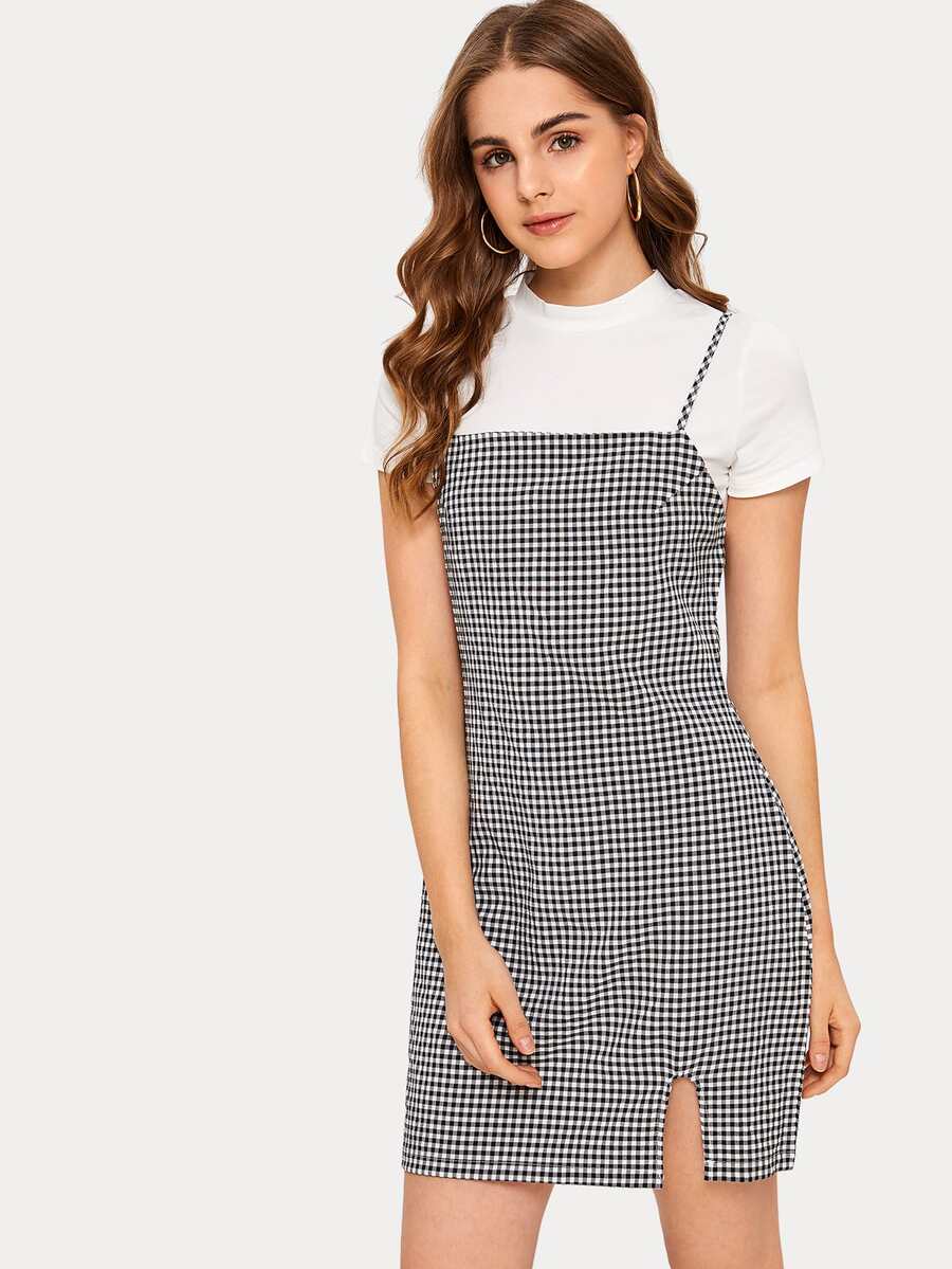 Vestido de tirante bajo con abertura de guingán