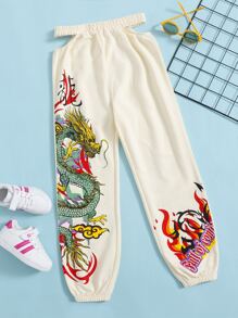 Pantalones De Chándal De Cintura Recortada Con Estampado De Dragón Chino Para Niñas