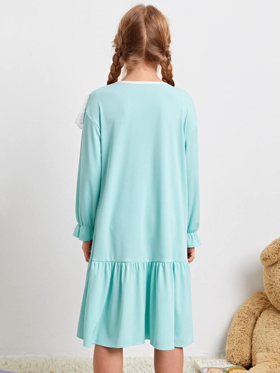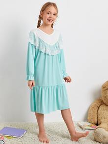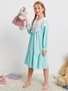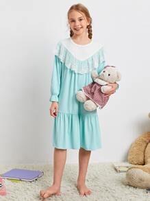 Niñas Vestido para dormir con encaje en contraste bajo con fruncido smock