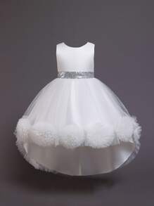 Vestido de gala de tutu irregular con lentejuelas en contraste