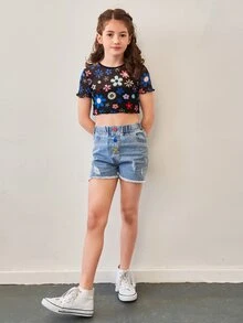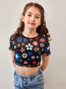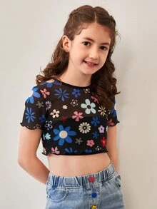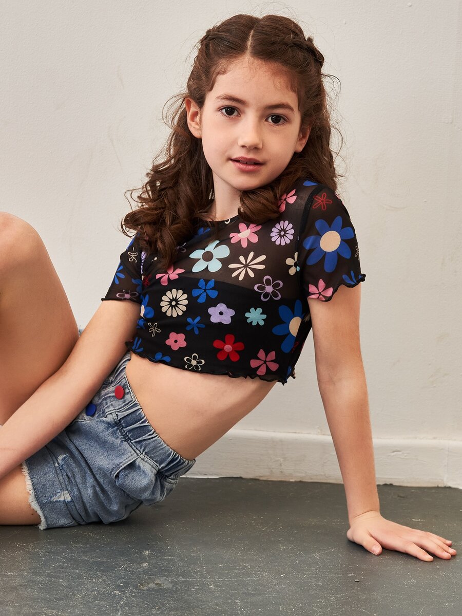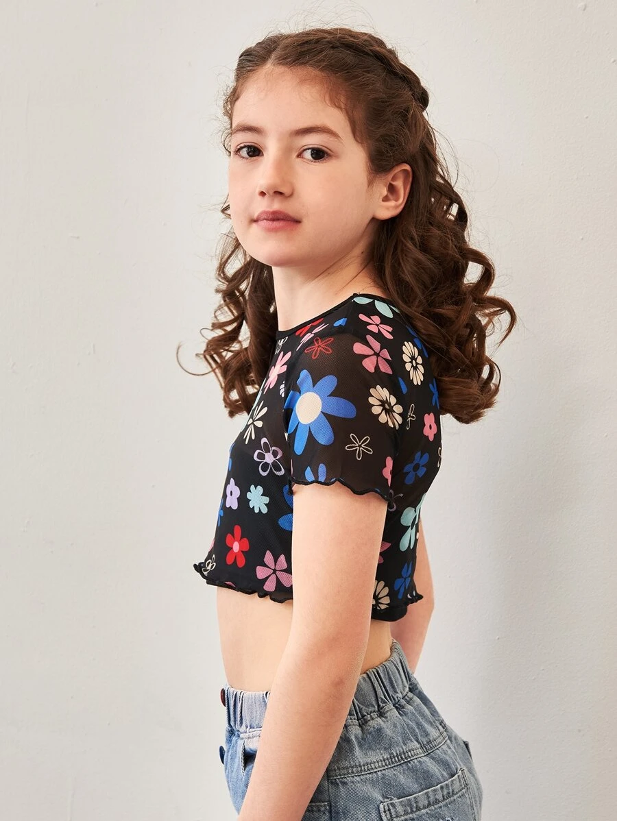 Tops de niñas Transparente Floral Casual